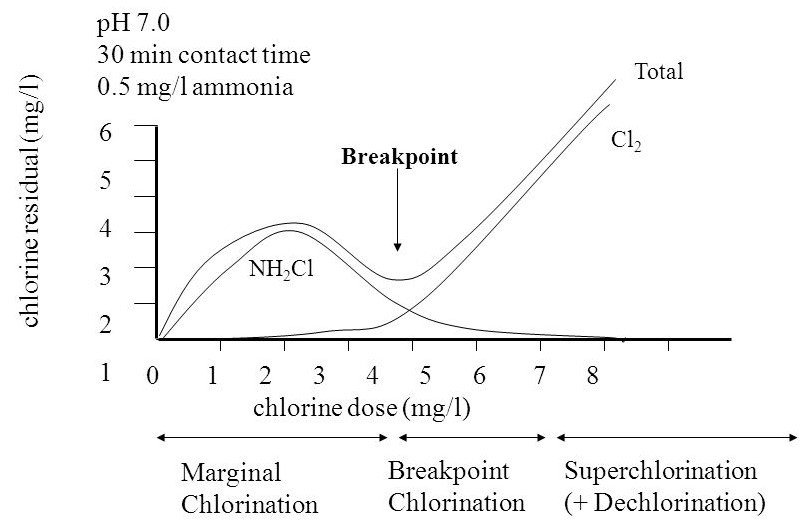 Para la dosificación efectiva del cloro, se utilizan, aparte del método de ruptura, el método de la clorinación marginal o el de la superclorinación/declorinación.